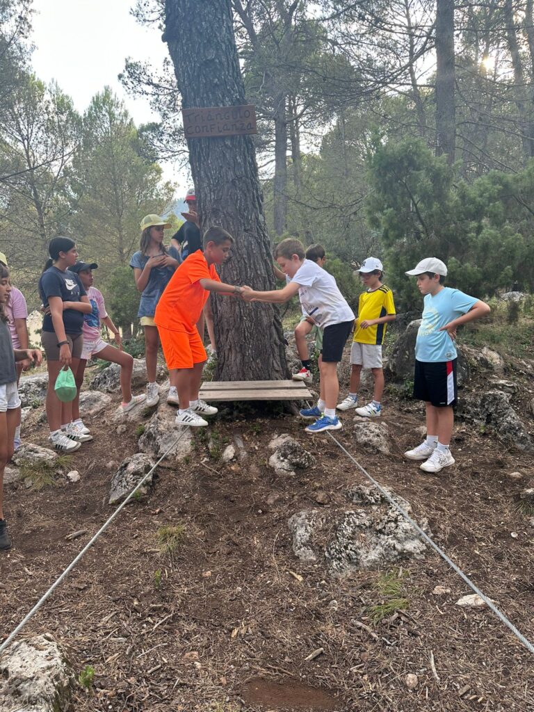 La segunda actividad de la tarde para el grupo 1 ha sido Tiro con Arco. Menuda puntería…varios de ellos han dado al centro de la diana. Ya os lo contarán. El grupo 2 ha desarrollado Juegos cooperativos. Han trabajado más la confianza y cohesión de grupo cumpliendo los objetivos de los juegos.